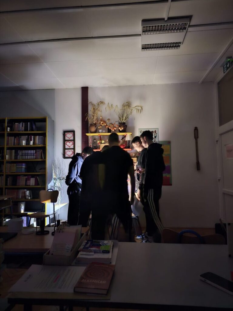 – paljenje svijeća koje su učenici rasporedili u obliku srca – simbola ljubavi, zahvalnosti i trajnog sjećanja.