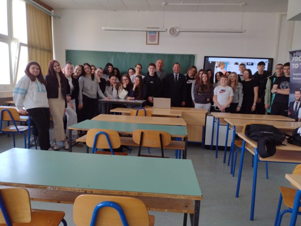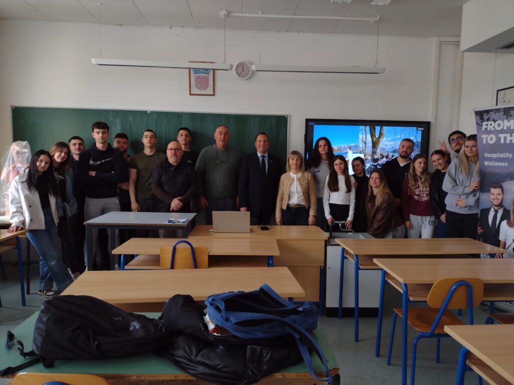 U našoj školi je 11. ožujka 2026. godine održana promidžba mogućnosti daljnjeg školovanja za naše učenike. Predavanje je održao mag. Petar Mihelčić, direktor Više strukovne škole za ugostiteljstvo, wellness i turizam Bled (VSŠ Bled).
